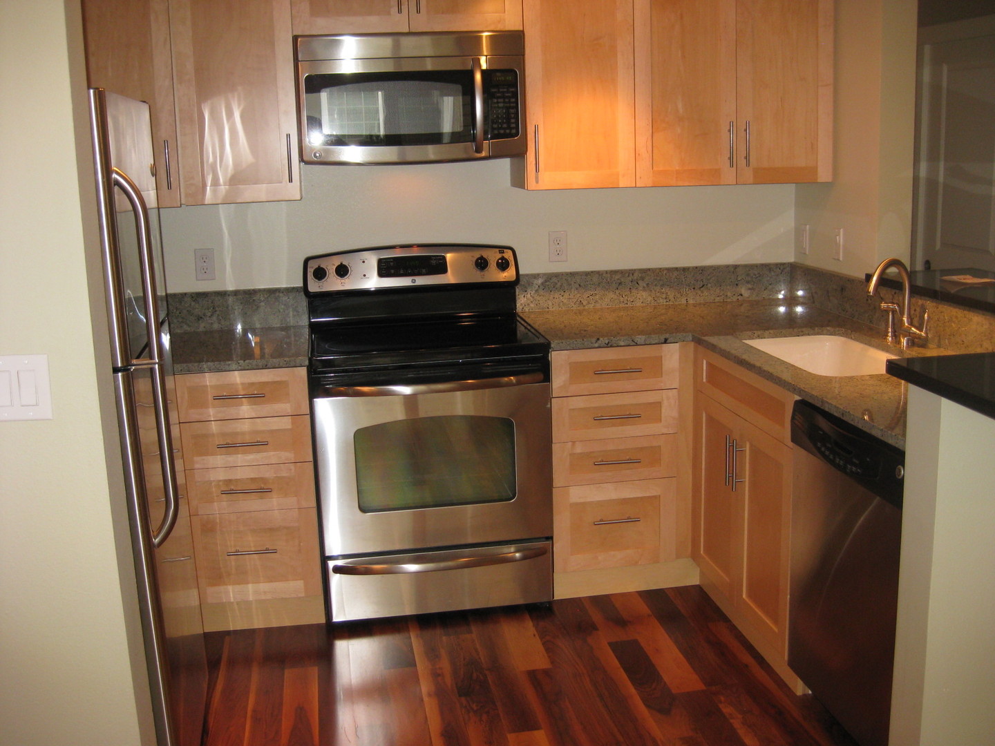 marble/granite countertops, 2 parking spaces, level walk in entrance, small fenced in patio area, enough for BBQ and outdoor chairs, some area for plantings, track lighting, window benches., fireplace . Dog allowed upon owner approval. Under 35# & 3yrs.