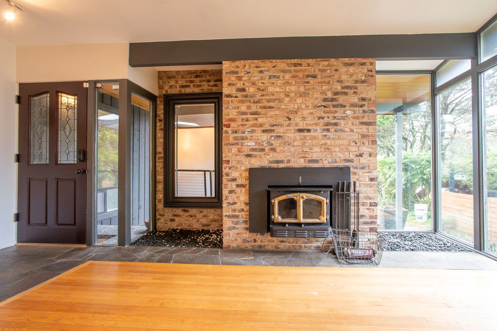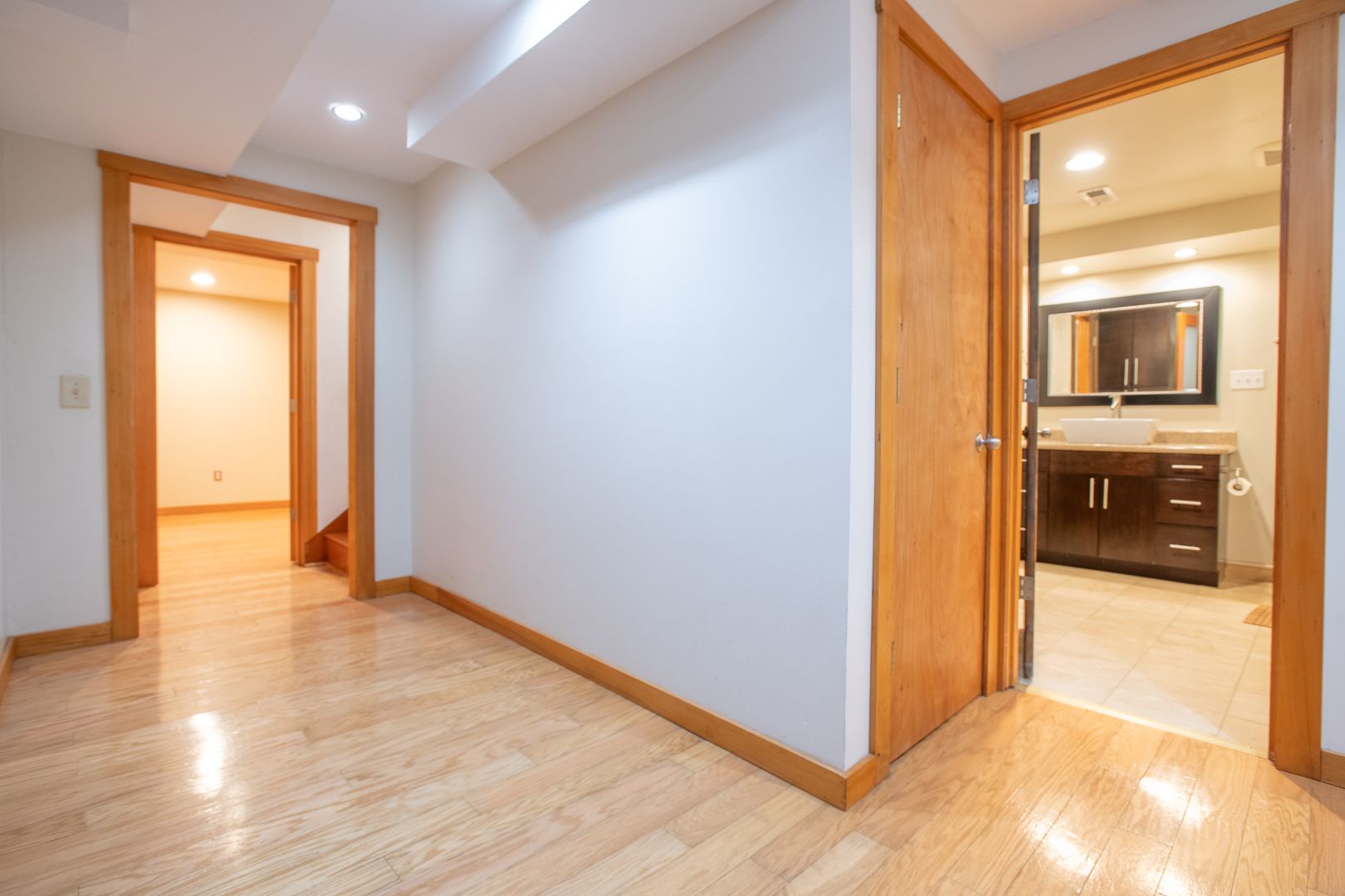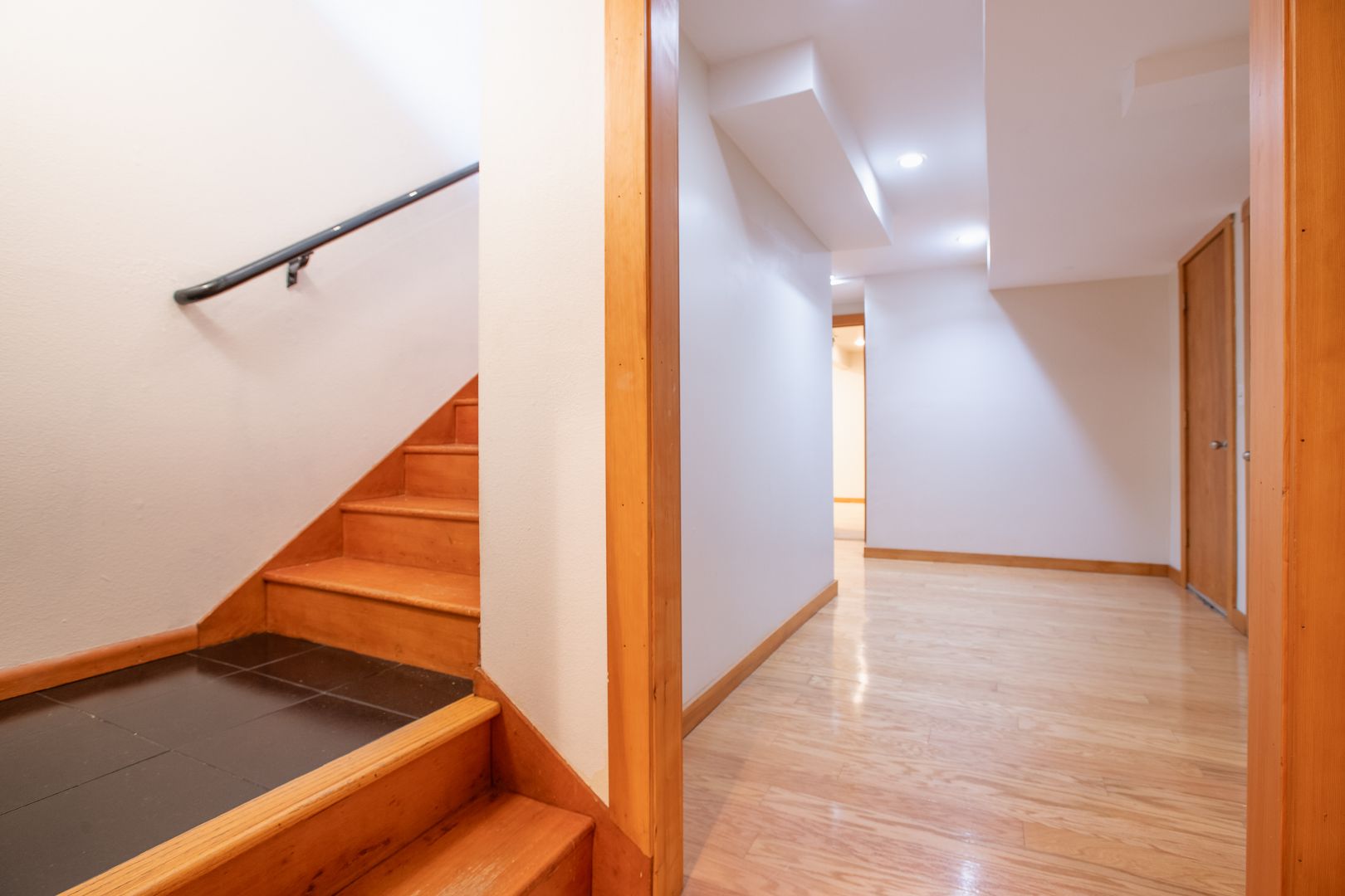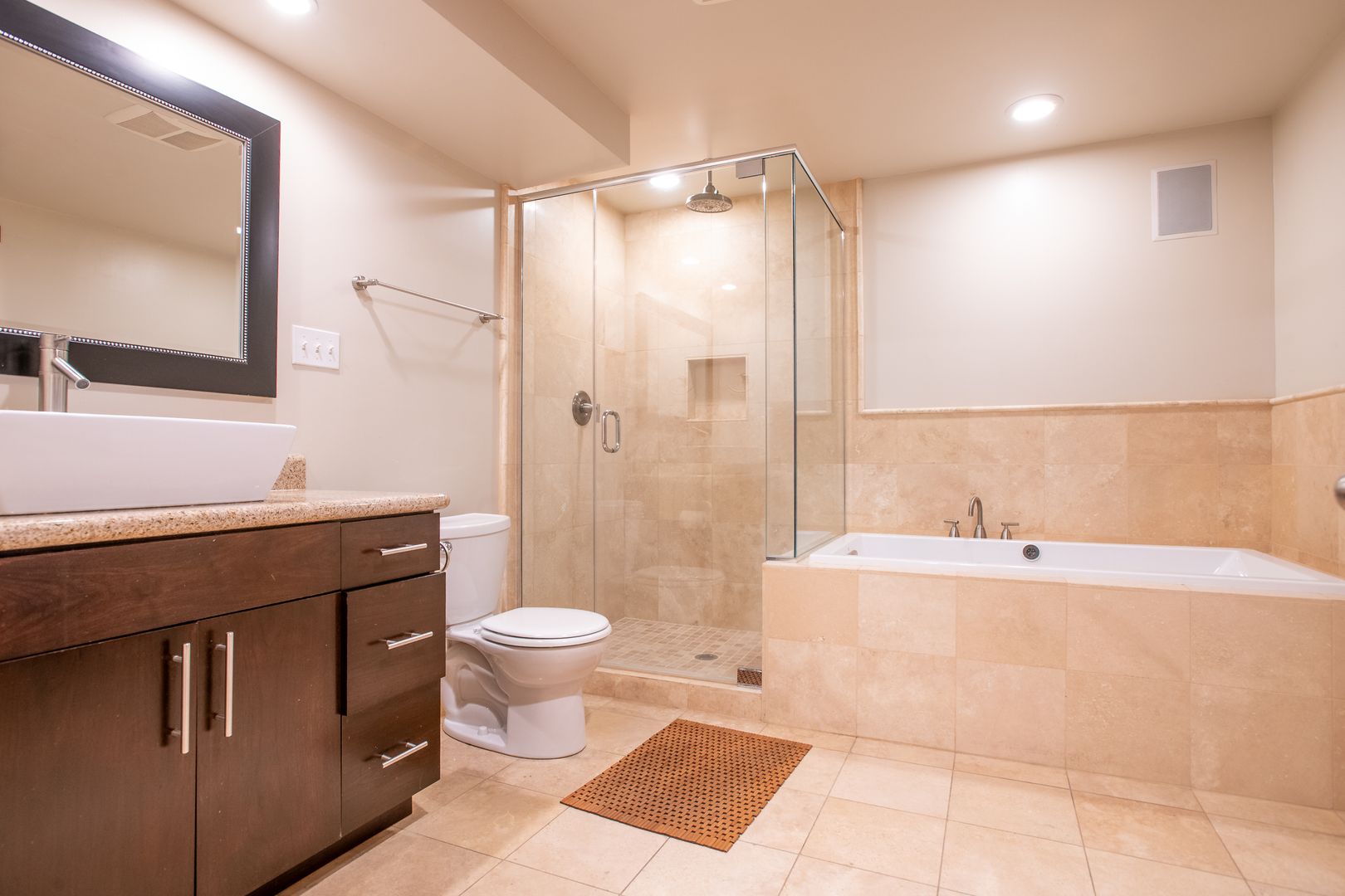 Granite gourmet kitchen opens to eating space with heated granite floor, skylites,windows,and a slider to the backyard. Cherry cabinets,oak flr, granite bar & cutting area, gas cooktop. 3BR and 2 baths on main level plus formal dining rm and living rm w/fireplace. Master bth has unique jetted soaker tub. Downstairs den/family rm w/fireplace and tile floor, large laundry/utility rm plus office/rec rm and convenient 2 car garage with shop space. One-half block from Discovery Park.
